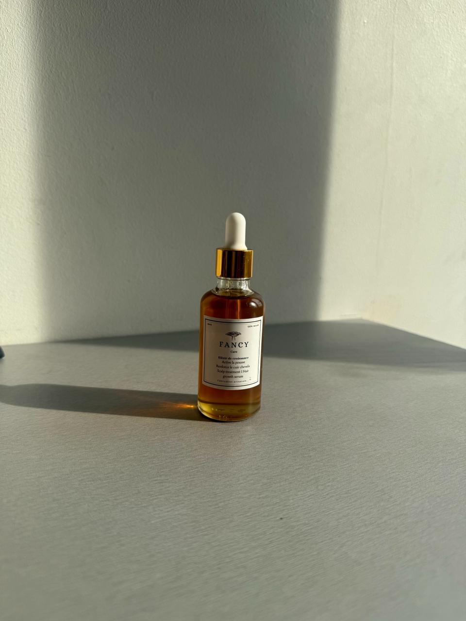 Le sérum Elixir de FancyCare est un soin complet pour le cuir chevelu réunissant quatre huiles pures et précieuses en un seul produit. Pensé pour celles et ceux qui souhaitent retrouver longueur et vitalité.